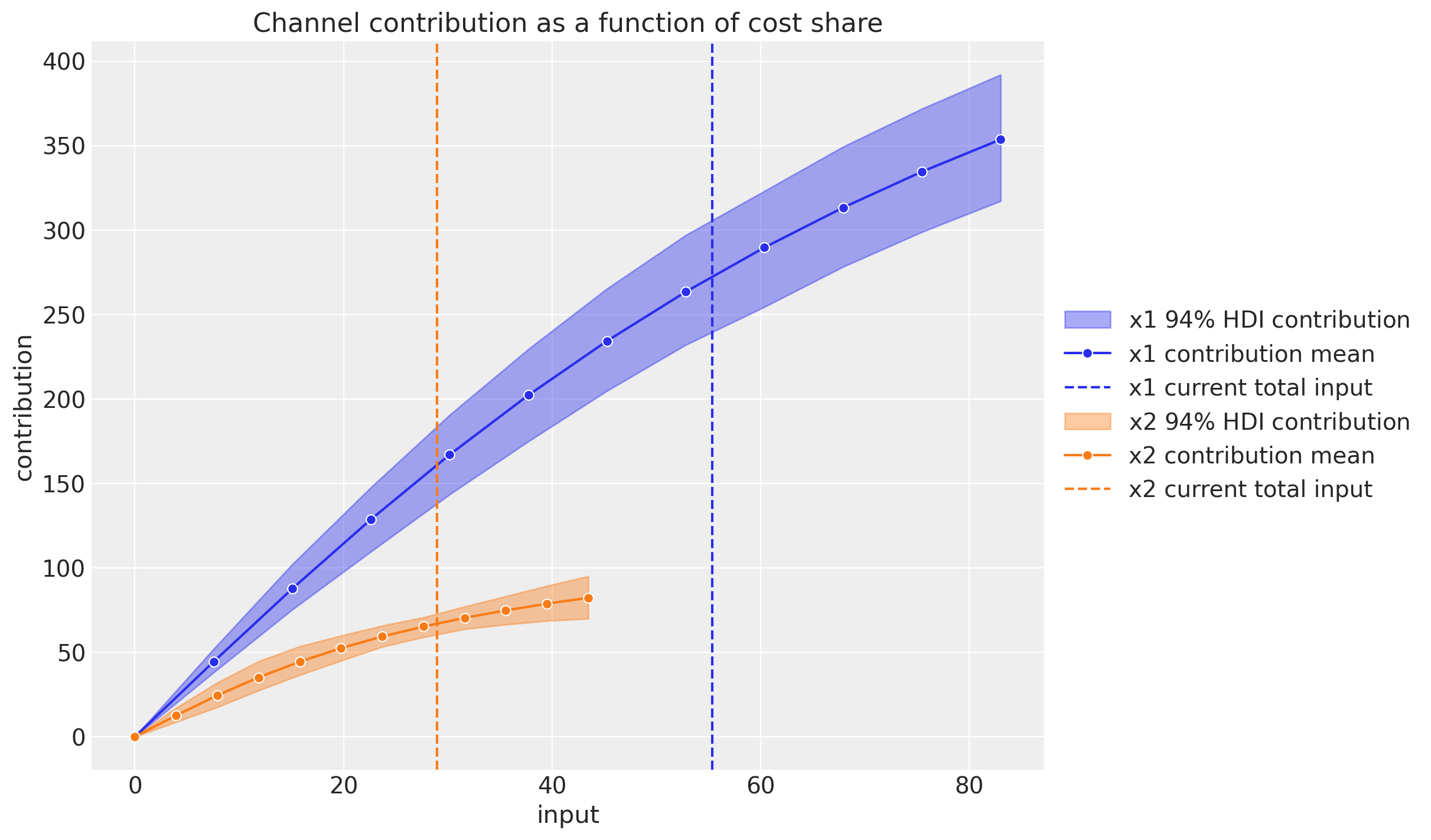 Budget Optimization: Allocate your marketing budget based on the parameters recover by the model, finding the spend distribution to maximizes the amount of contribution given a limited budget. See Budget Allocation with PyMC-Marketing.